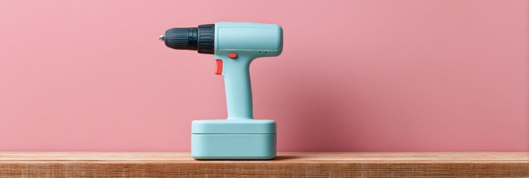 High-Quality Cordless Power Drill with 18V Lithium-Ion Battery on Wooden Surface Modern Tool for Professional Construction and DIY Marketing Content