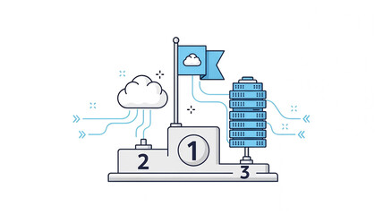 Cloud Computing Technology Ranking Concept with Winners Podium Server Rack and Data Network Symbols