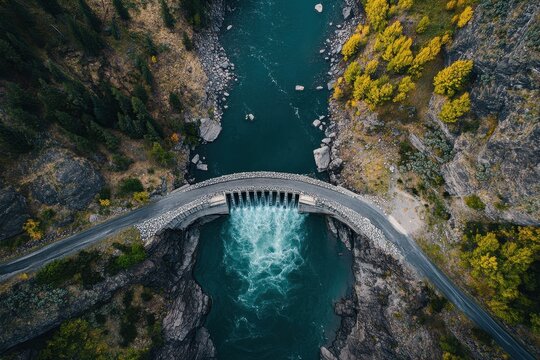 Dramatic aerial view of Salmon Falls Dam in Southern Idaho during autumn, Aerial shot of the Salmon Falls Dam in Southern Idaho, a masonry arch-gravity dam built in 1910
