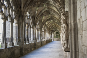 The Stone of Remembrance at the Commonwealth War Graves Commissions (CWGC) Brown's Copse Cemetery in Northen France on a snowy winters morning.