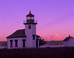Washington State, Maury Island, Point Robinson Lighthouse, established 1885, built 1915, with Mt. Rainier