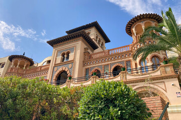 House of Navajas, a palace decorated with tiles of the Moorish revival of 1925 with gardens and exhibition ground in Torremolinos, Spain