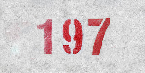 Red Number 197 on the white wall. Spray paint.