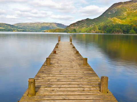 Ullswater is the second largest lake in the English Lake District, being about nine miles 14.5 km long and 0.75 miles 1.2 km wide, with a maximum depth a little more than 60 metres 197 ft