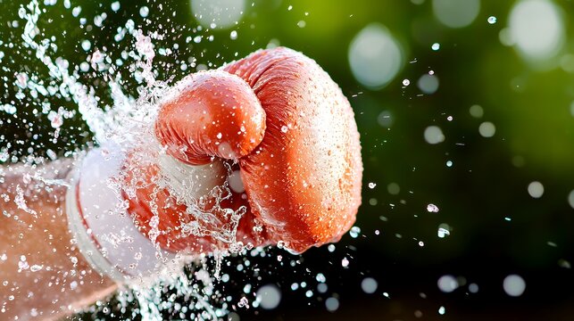 Powerful splash a fist in motion capturing strength and fitness with water spray for dynamic visuals and energetic concepts 197 characters
