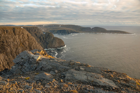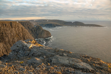 Midnight sun near Nordkapp illuminates north-facing cliffs at 1am