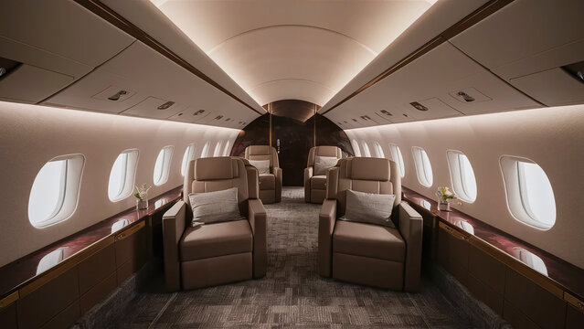 luxury high-end private jest interior, first class flight, rich people lifestyle