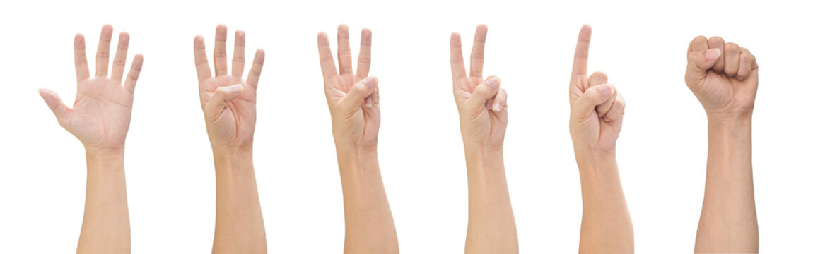 Hand counts from zero to five isolated on transparent background PNG file
