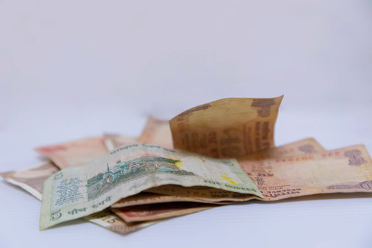 20 Nepalese rupees bills lies isolated on white background with copy space. Rich life conceptual background