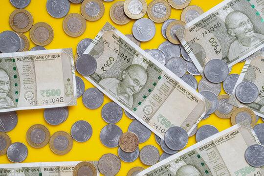 Hands over 10, 20, 50, 100, 200, 500 and 2000 Indian rupees, coins, old and new notes.