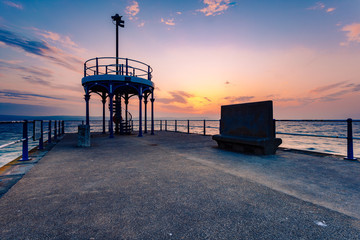 Scenic 18th century clock tower against sunny sky