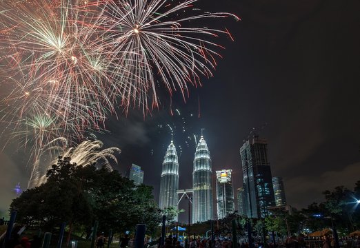 Kuala Lumpur, Malaysia Celebration on 12am 31 December 2016 colorful firework for new year 2017