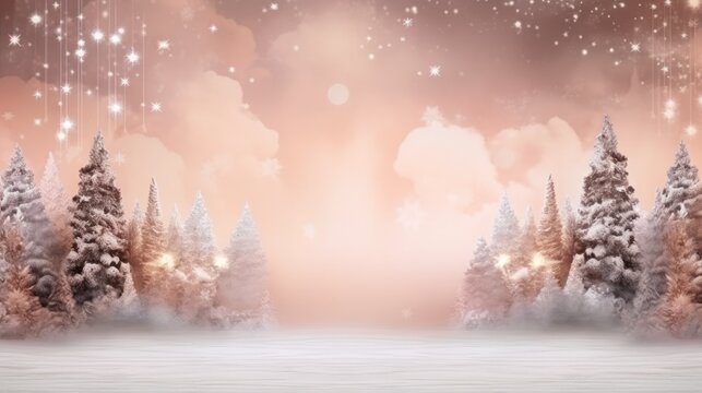 Peach Fuzz color of the year 2024 Christmas festive background. New 2024 trending Peach Fuzz color. Colour trend palette.