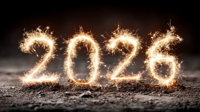 Sparkling Fireworks Display Creating the Year 2026 on Dark Background