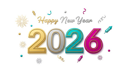Golden 2026 numbers with festive ornaments and confetti celebrate New Year