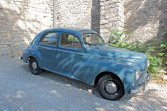 rear right car side of an old french car early 50s - close up - peugeot 203