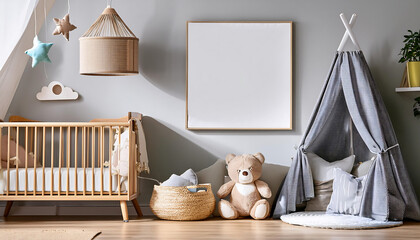 Scandinavian Nursery with Wooden Cradle and Poster- Description- Bright and stylish Scandin_1(203)