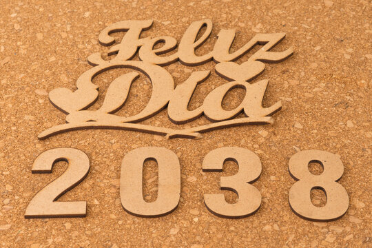 Happy new year 2038 on wooden background