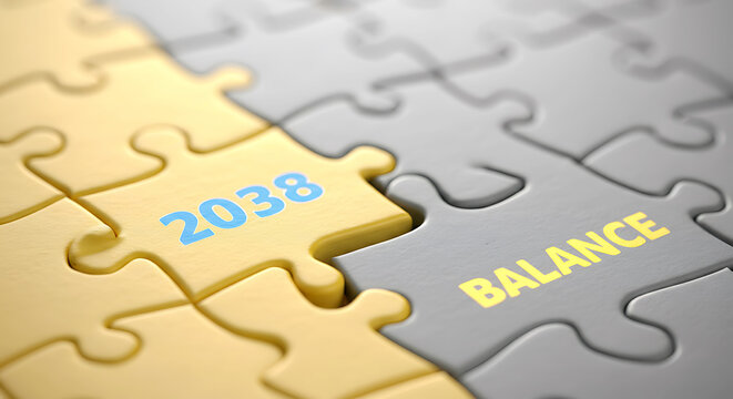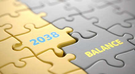 Jigsaw puzzle pieces forming connection with future 2038 and balance concept