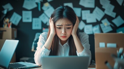 Busy smart young asian girl student marketing smm manager social media worker freelancer intern businesswoman working remote distant studding in office desk in coworking space. College education