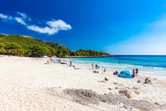 Possidi, Greece, July 21, 2023. White lighthouse on Possidi beach.
