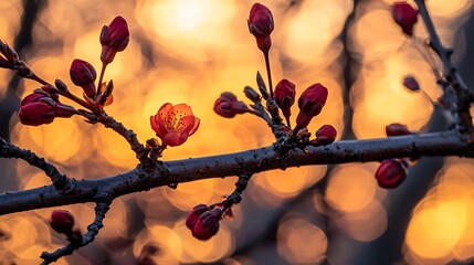 215. Close-up of delicate cherry blossoms on tree branches with a soft blurred background