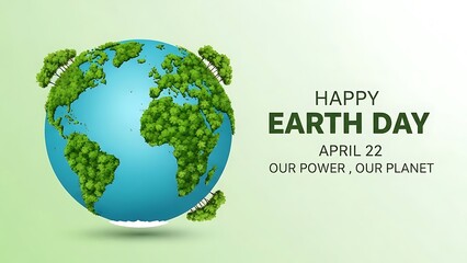 Our power our planet: a graphic illustration celebrating happy earth day on april 22