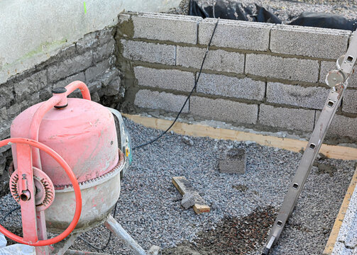 Small construction site making new wall on house Kumla Sweden august 22 2023