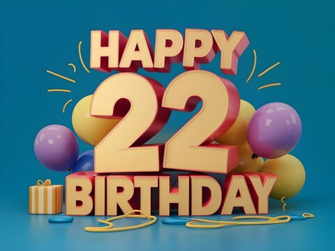Celebration of 22nd birthday with colorful balloons confetti and sparkling number 22, festive party mood, fun event, joyful atmosphere for special occasion.