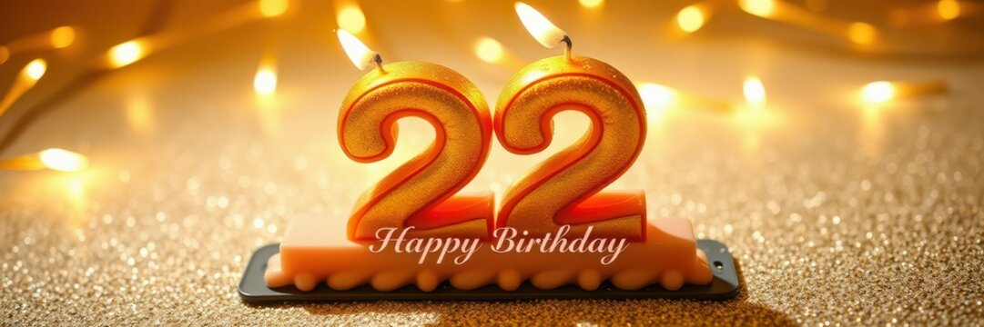 Candles and decorations celebrate 22nd birthday milestone with warm lights and festive atmosphere