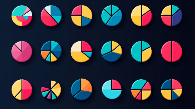 An icon set depicting a pie chart divided into 29 segments, useful for infographics and data representation