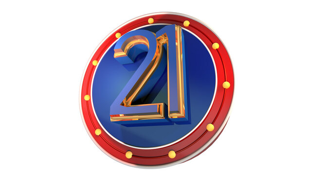 Blue 3d number 21 on round shape