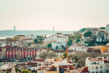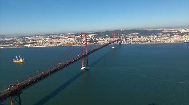 Aerial view of the 25 de Abril Bridge in Lisbon, Portugal