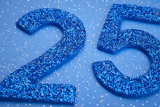 Number twentyfive blue color over a blue background. Anniversary