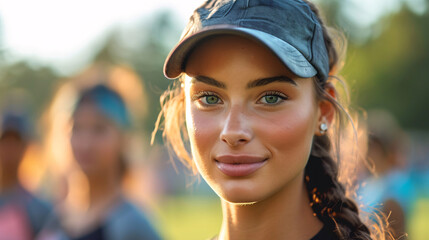 Portrait of a beautiful young sportswoman in a cap smiling at the camera.