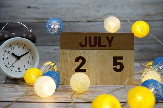 Wooden Calendar Showing the Date of July 25th. Day 25 of July month