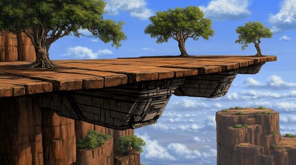 Pixelated steampunk cityscape.  A detailed pixel art scene of a bridge spanning a valley with towering clock towers, intricate gears, and ornately designed structures.