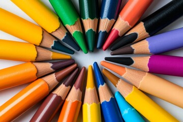 A cute 2D depiction of a child drawing with crayons, surrounded by vibrant scribbles on a white background