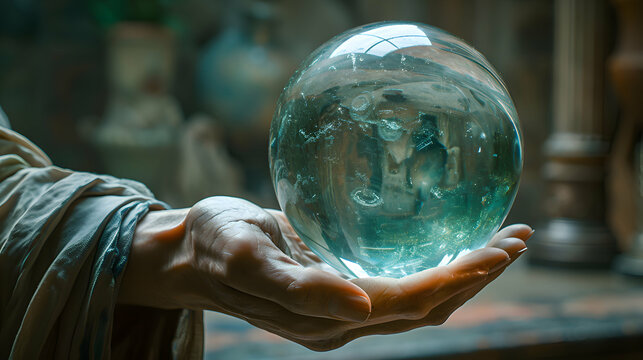 A high-definition shot of a glassy 3D object casting reflections on a marble floor, under ambient light