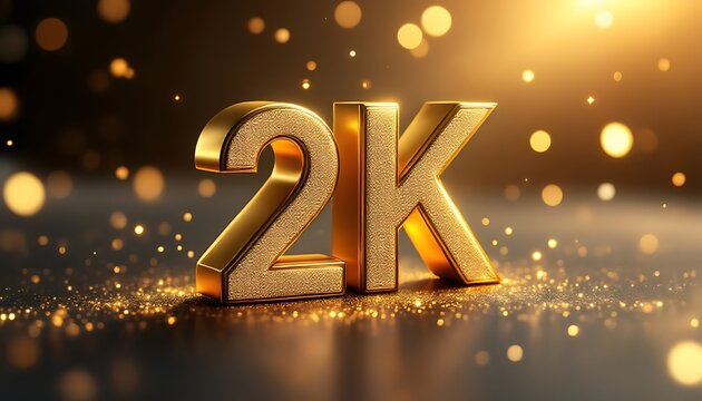 Golden 2K Text With Metallic Gleam Emphasizing Its Milestone Or Resolution Symbolism 3D Illustration