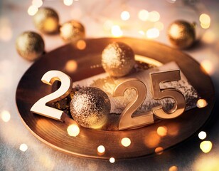 2025 new year, text numbers on wooden block cubes.