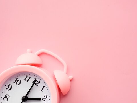 Pink background with alarm clock at 2am 2pm and copy space to add text