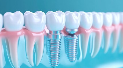 Digital human face model spinning against blue background pattern
