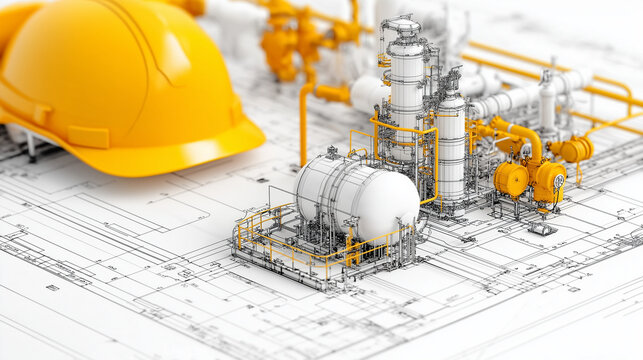 Modern Architecture Building Model on Blueprint with City Lights Background