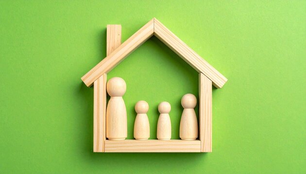 Wooden human figures surrounding small wooden cube, teamwork metaphor. Community