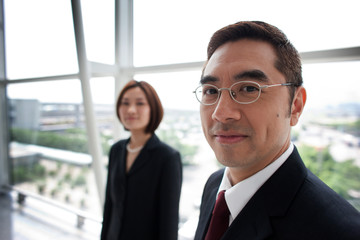 Portrait of Chinese businessman with his colleague in the background.