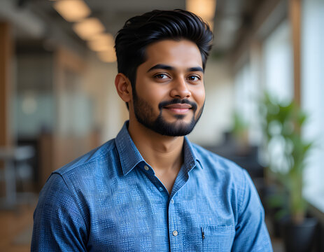 Close up portrait of call center agent working in a professional setting. She is wearing a headset and sitting at her workstation, ready to answer calls and assist customers with their inquiries.