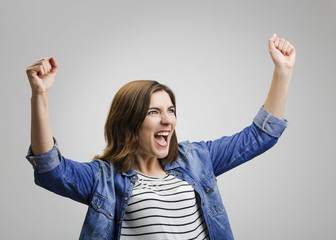 Winner. Happy Black Man Screaming In Delight And Shaking Fists Standing Over Yellow Studio Background.
