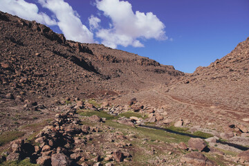 Hiking Jebel Sirwa at sunrise, the highest peak of Antiatlas mountain range, 3304 m