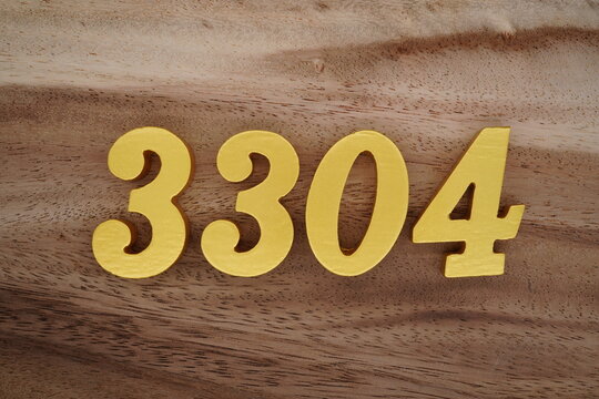 Golden Arabic numerals on a real brown and white wooden floor number 3304